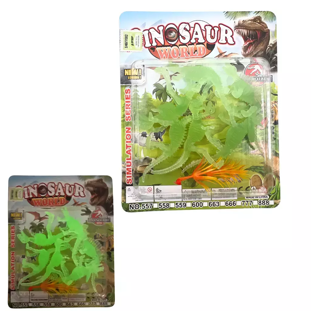 Contiene: 1 plantita y 6 dinosaurios que brillan en la oscuridad